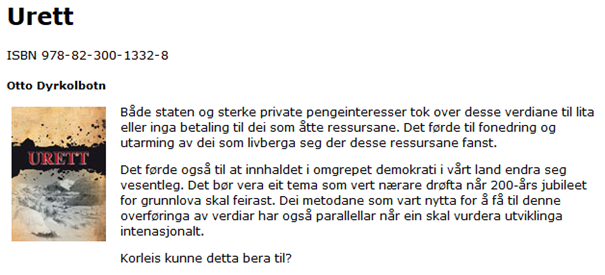 Forsida inneholder bare ett ord, Urett. Ingen forfatter. Men for denne flotte tittelen er det spandert en svart bakgrunnsfarge med svært så pikselert oljeflekk-grafikk. Resten av dette monumentalverket på 571 sider er selve definisjonen på TL;DR. Heldigvis faller høydepunktene tett før brødteksten begynner.