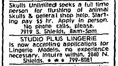 Da jeg prøvde å finne ut mer om firmaet, kom jeg til ei jobbannonseside. I noen filmer ser man personer sitte med jobbannonse-sidene i ei avis og ringe rundt de aktuelle. Her er noen, dessverre med dårligere enn vanlig trykkekvalitet. (Det er newspapers.com sin feil).