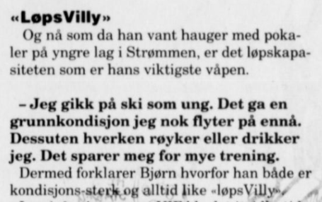 Høyt på lista over treningsaktiviteter, sto det å ikke røyke, slik at han heller ikke trengte å trene.