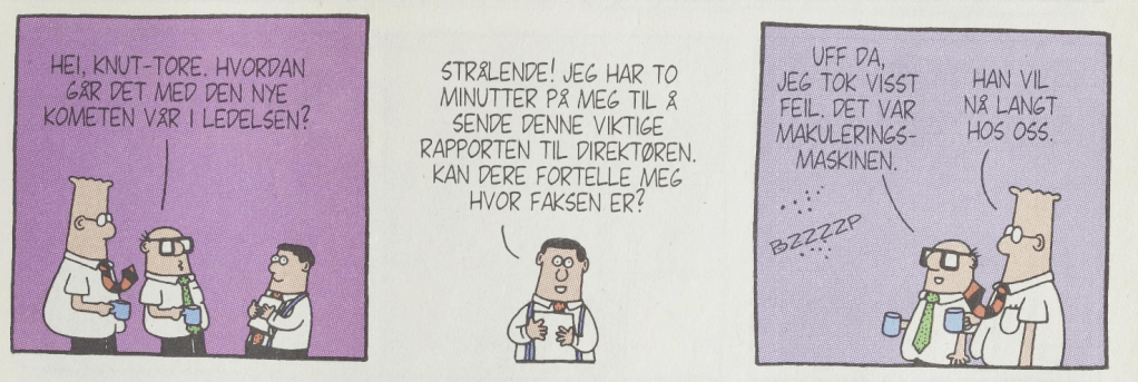 Et annet tilfelle der noen «høyere oppe» bestemte seg for å bruke det engelske navnet, gjelder Dilbert og Dogbert, som het Herbert og Hundbert da de først kom på norsk. Et motsatt eksempel finner vi i barneboka Norman og den flinke fuglen som Røsåsen oversatte i 1994. Boka handler om Georg Price, på engelsk Norman Price. Tydeligvis var det noen som på et tidspunkt bestemte seg for at gutten som alltid fikk kjeft, ikke skulle hete «Nordmann».