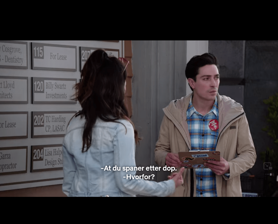 Tilbake til Super Store. Ny sesong, og protected from corporate, you should have been merchandise er det som sies, altså «beskyttet av ledelsen/hovedkontoret, burde du vært salgsvarer». Det som står under, får meg virkelig til å lure på oversetteren. Men igjen, man får de man fortjener.