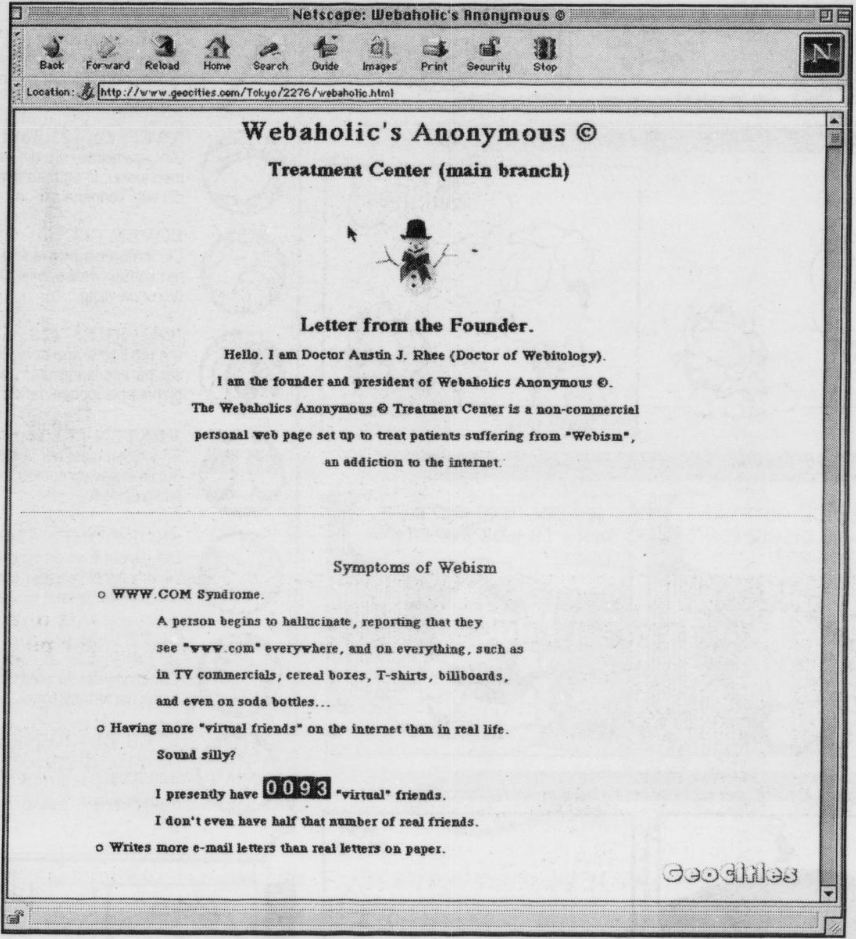 Men siden nettsida for Anonyme Webaholikere har et fint bilde av en snømann, velger du å la deg behandle her likevel.