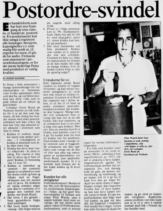 I april 1990 sto det annonse for PilotTM Watch i VG og Dagbladet. Prisen var 98 kroner.