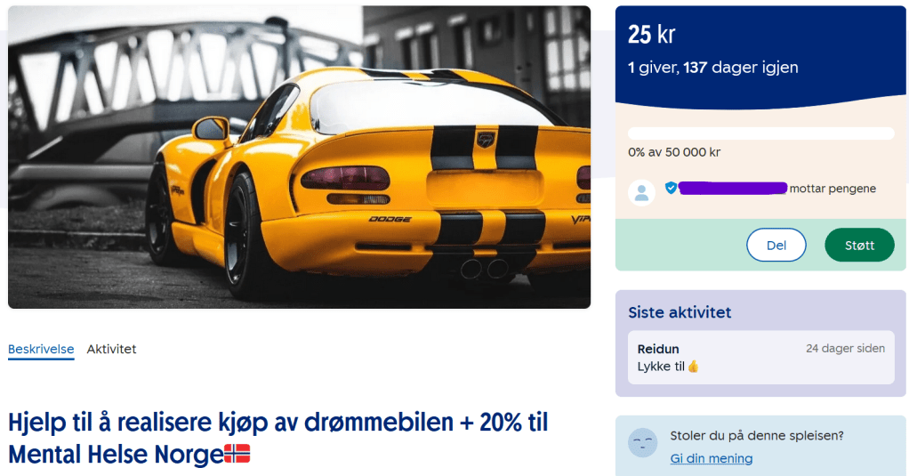 25 kroner er et stykke på vei til 50 000. Men med 25 kroner til, da hadde et viktig delmål vært oppnådd, nemlig 1 promille av ønsket sluttsum.