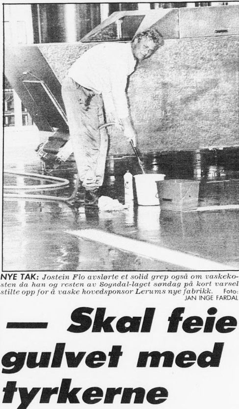 Sogndalsbygda var i pandemonium. Saftfabrikken Lerum havnet i en «prekær situasjon». Fabrikken på 5000 kvadratmeter måtte vaskes. «Selvsagt» var det A-laget til Sogndal som stilte opp med kostene og bøttene.