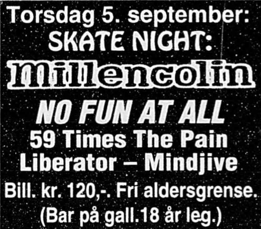 27. september blir det svensk skate-punk-show på Sentrum Scene med Satanic Surfers, No Fun at All og Millencolin.