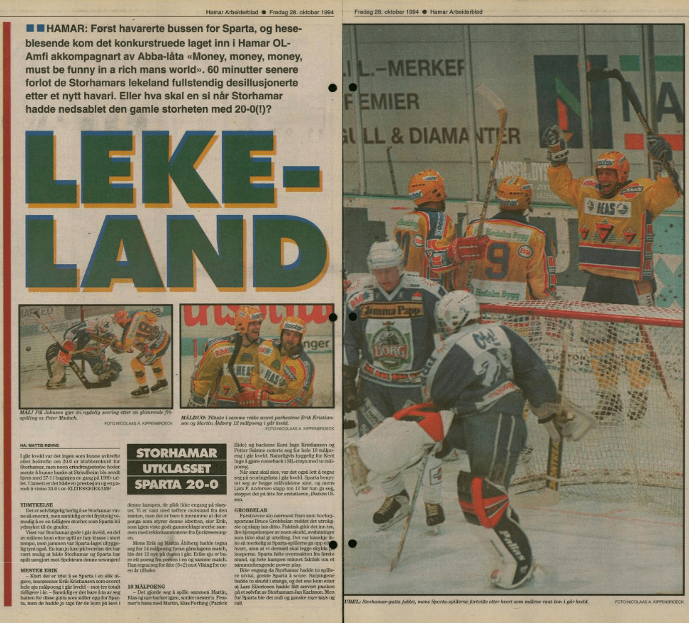 Som plaster på såret bringer jeg herved et utklipp om da Sparta tapte 20–0 i ishockey.