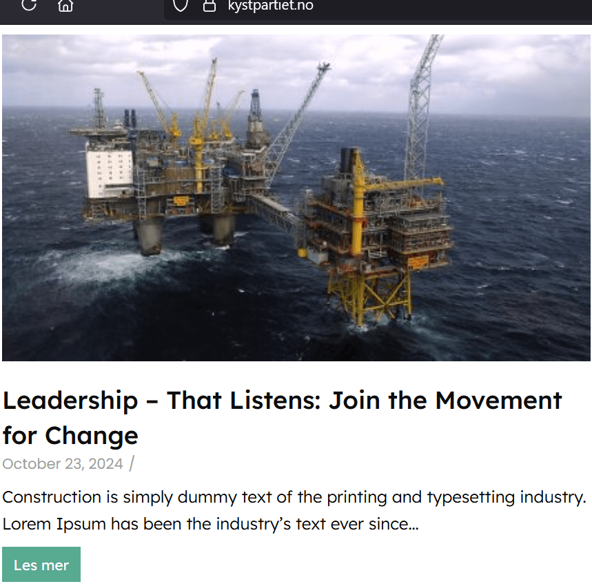 Det er lite som skjer i Kystpartiet. Dette er nyeste innlegg på hjemmesida.