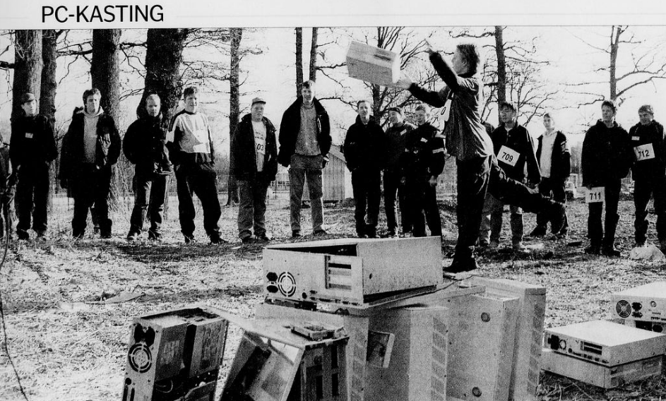 PC-kastinga ble avholdt som annonsert, og fikk stor plass på forsida til Tønsbergs Blad. Avisa valgte ikke den «skumle hacker»-vinklinga, og slo til med overskrift «Dataparadis i Hortenshallen». Deltakertallet var halvparten av det arrangøren snakket om på forhånd, men det foregikk uten tekniske hiccups. Så var det kastinga, da. Banen var satt opp med et bilde av Bill Gates i enden for å «motivere deltagerne til å gi alt de hadde av krefter». Det ble sagt lite om hvor langt tenåringene klarte å kaste, men det var i hvert fall ekstrapoeng for knusing i ekstra mange biter. Og i Gjengangeren kom svaret alle venta på, vinneren kasta 16 meter. Her fortelles det også om en skade, «en rift i fingeren».