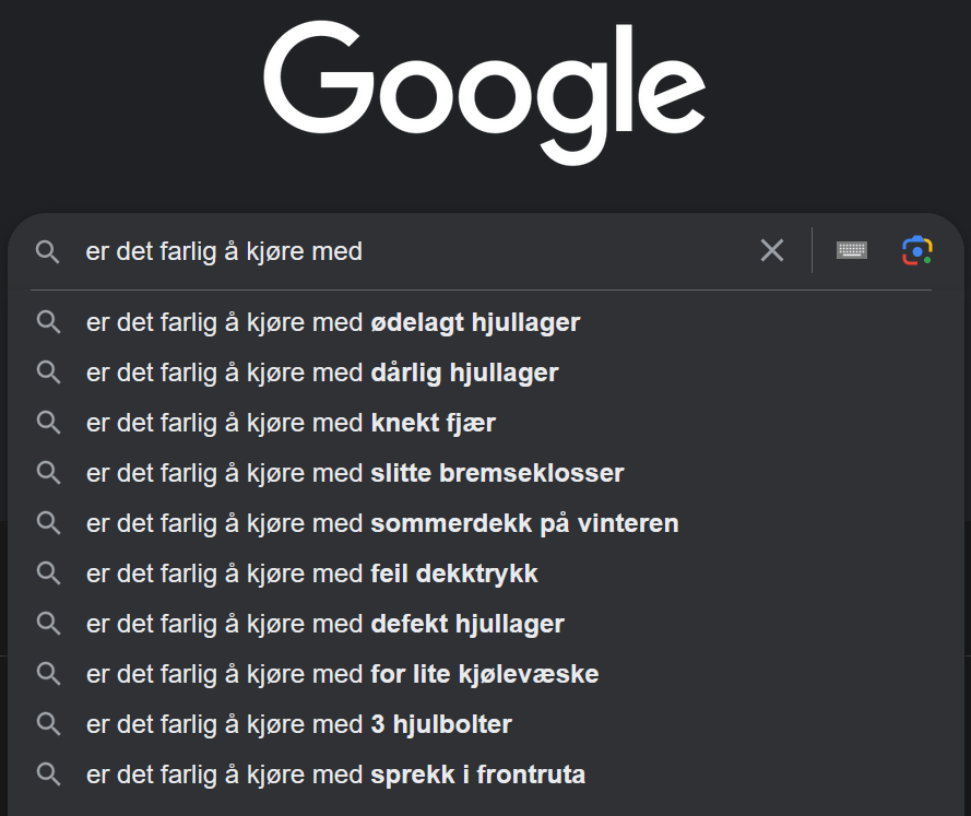 Ja, nesten alle disse er svært farlige. Her ser jeg på søkene som en håpefull søken etter bekreftelse på at man slipper å dra til bilverksted.