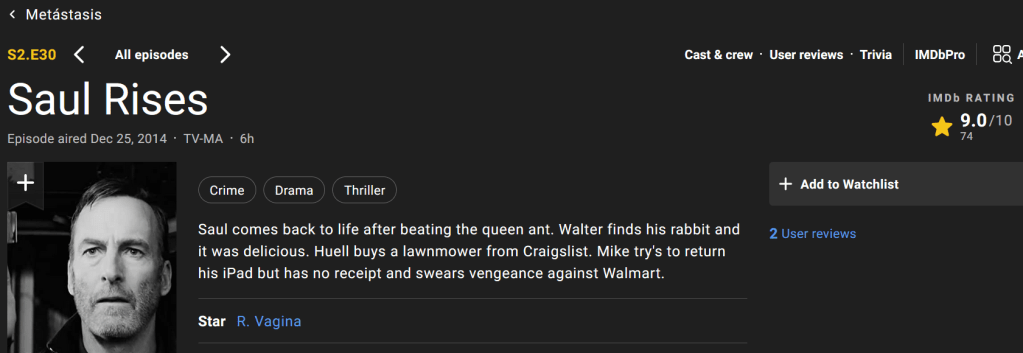 Sesong 2, episode 30 og 31 finnes selvsagt ikke. På IMDB ligger det nemlig, og det har lenge ligget ute, en hel haug med fake episoder av showet, i hvert fall siden 2015. Her er permanente lenker til sesong 1 og sesong 2 slik de ble arkivert i 2022, bestående av bull fra ende til annen. Slik at du kan kose deg med det, hvis noen skulle finne på å gjøre om IMDB-sida så informasjonen ble … riktig.