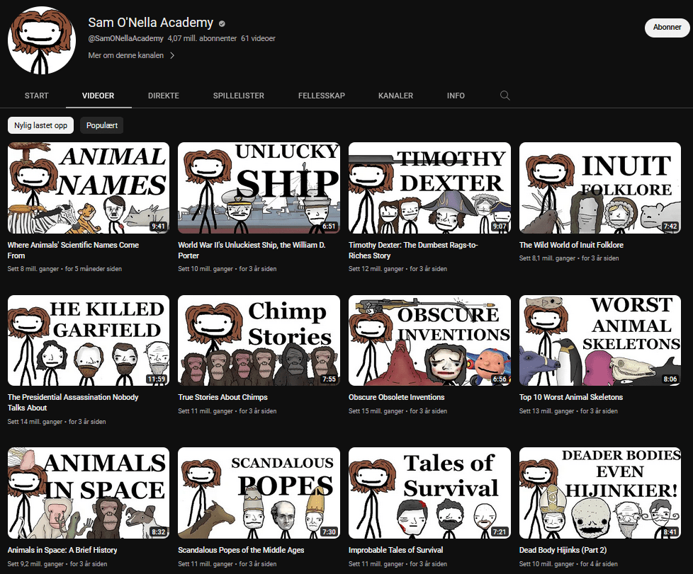 Slutta etter bare 60 videoer (la seinere ut video nummer 61 etter 3 års fravær, men det kom ingen flere. Eller?)