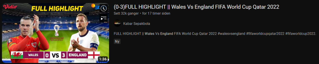 Jeg valgte en annen VM-kamp å kikke på, Canada-Marokko. I videoen under er det to-tre sekunder med matchbilder før det følger en 2,5 minutt lang triksevideo av et barn, trolig i Afrika. Triksevideoen kunne kanskje blitt populær av egne meritter, så kunne vært noe å satse på, men jeg mistenker at brukeren ikke har copyrighten.