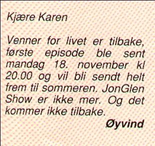 «Tabber på tv med JonGlen Show», Status 2 høsten 1996